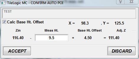Therefore, CHECK the box for Calc Base Ht. Offset. (This tells TileLogic that the rod height is not the 4.5 that was standard. Note the 4.5 appears in Base Ht. Offset.)