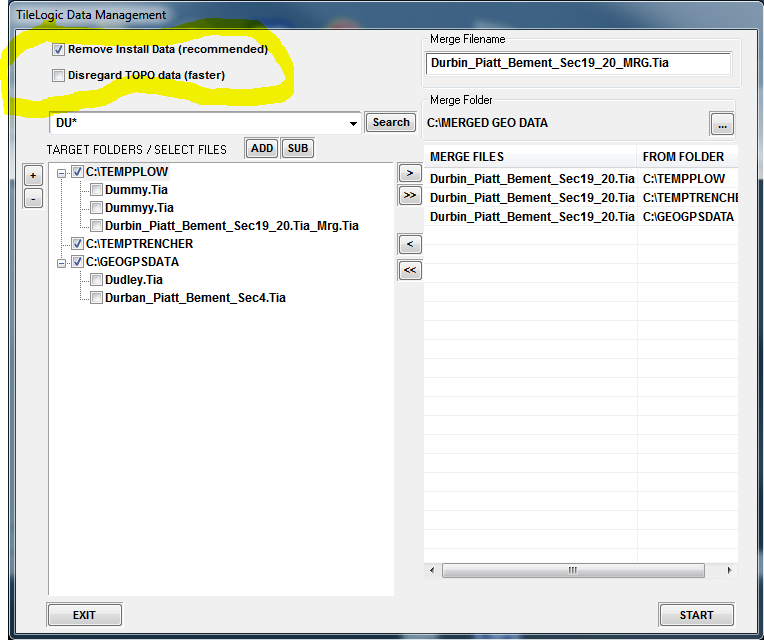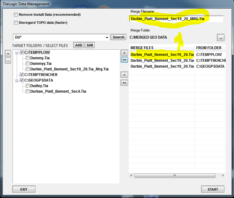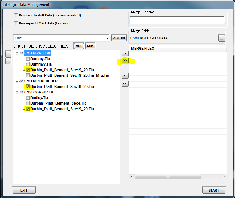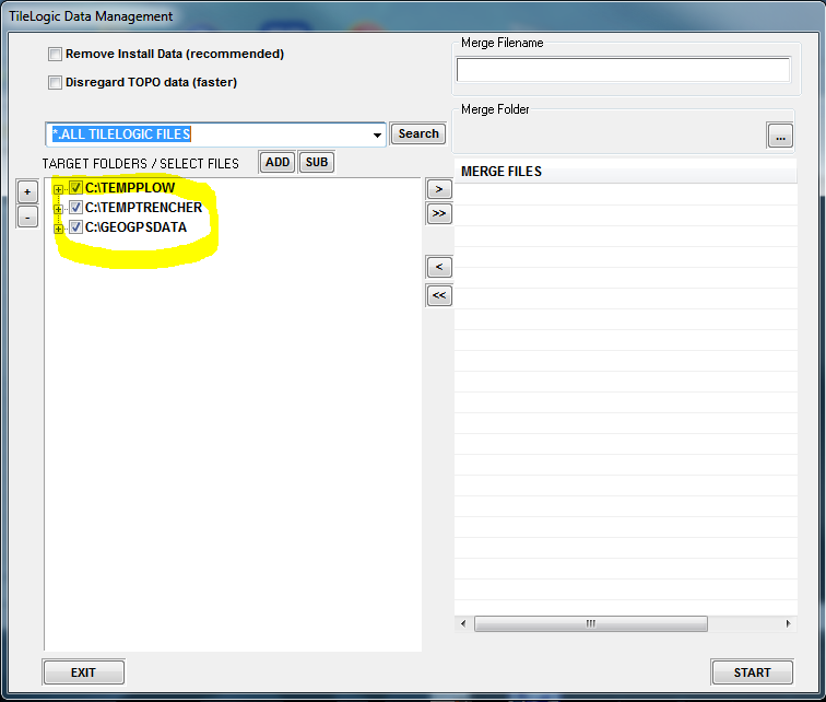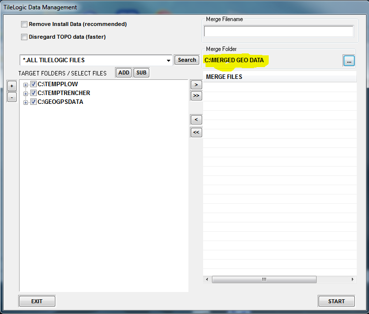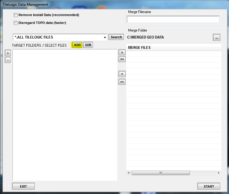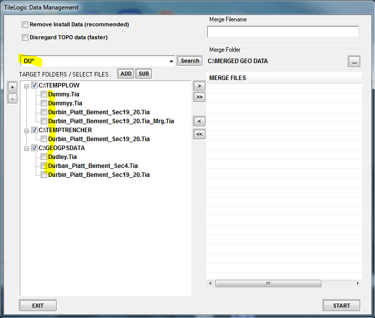 Now, find files in to merge...clicking Search with "*.ALL TILELOGIC FILES" could yield lots of files...
